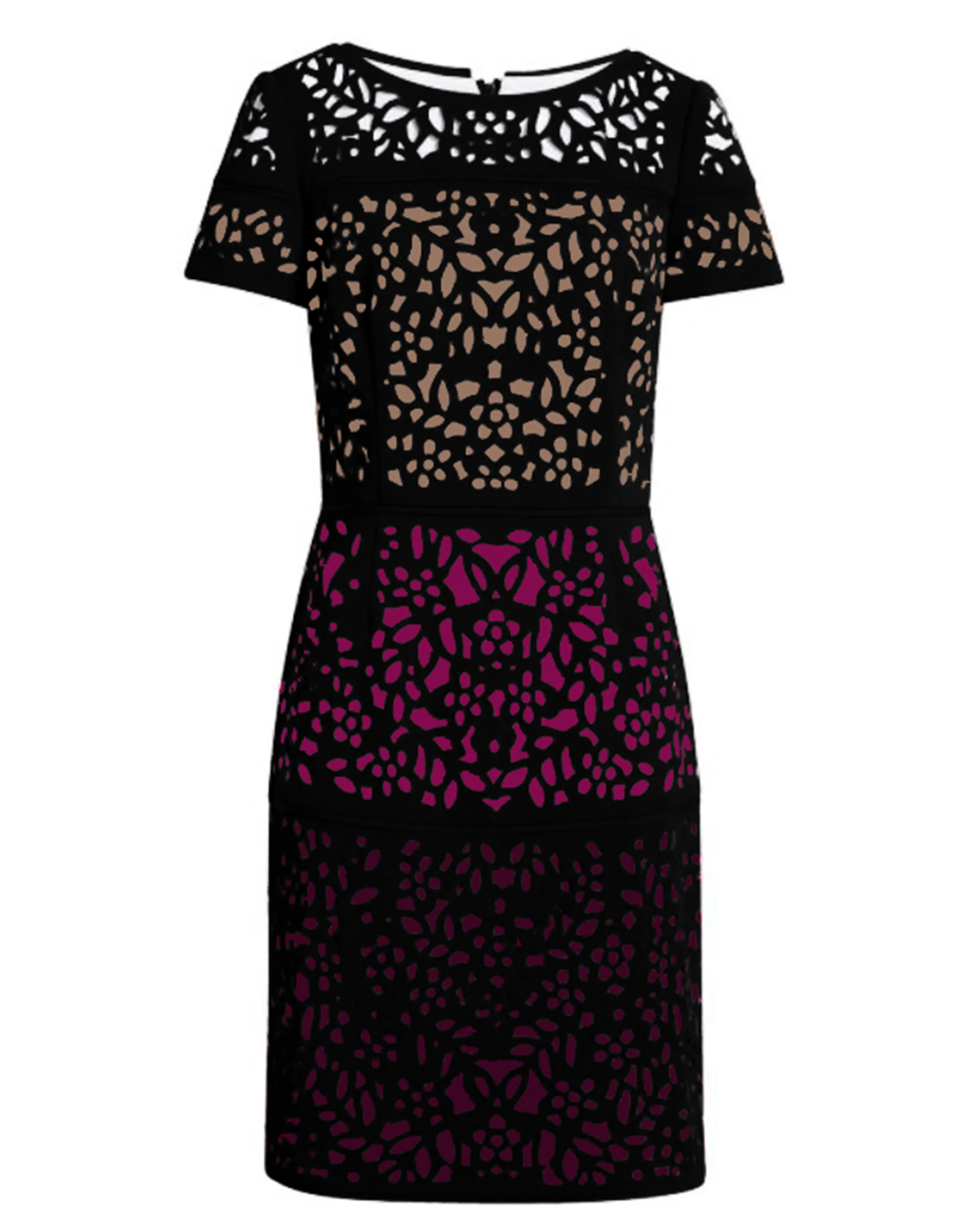 Colorblock Laser Cut Dress Dress in Berry