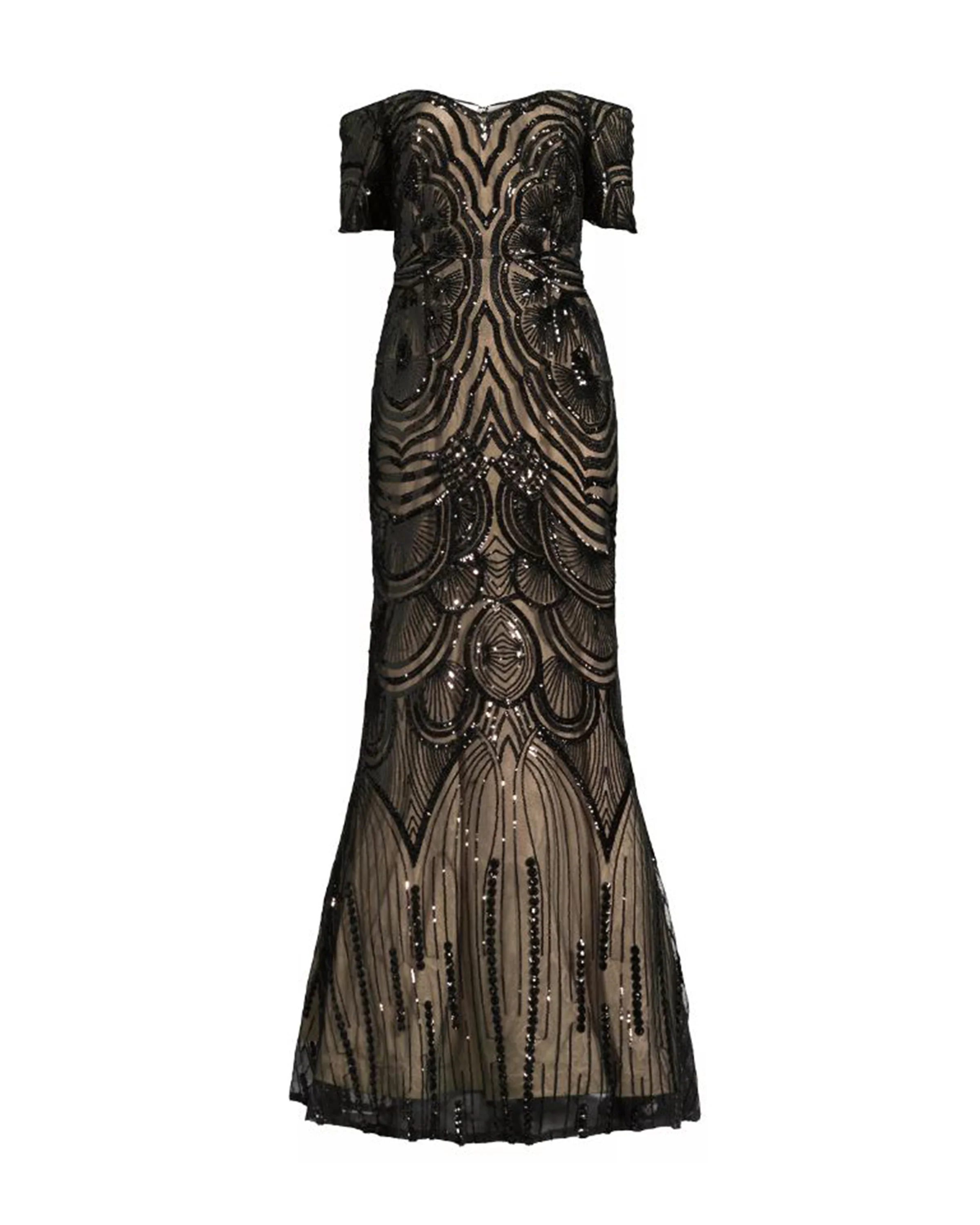 Featuring a stunning off the shoulder neckline and flattering mermaid silhouette, this gown is the perfect choice for your special occasion.