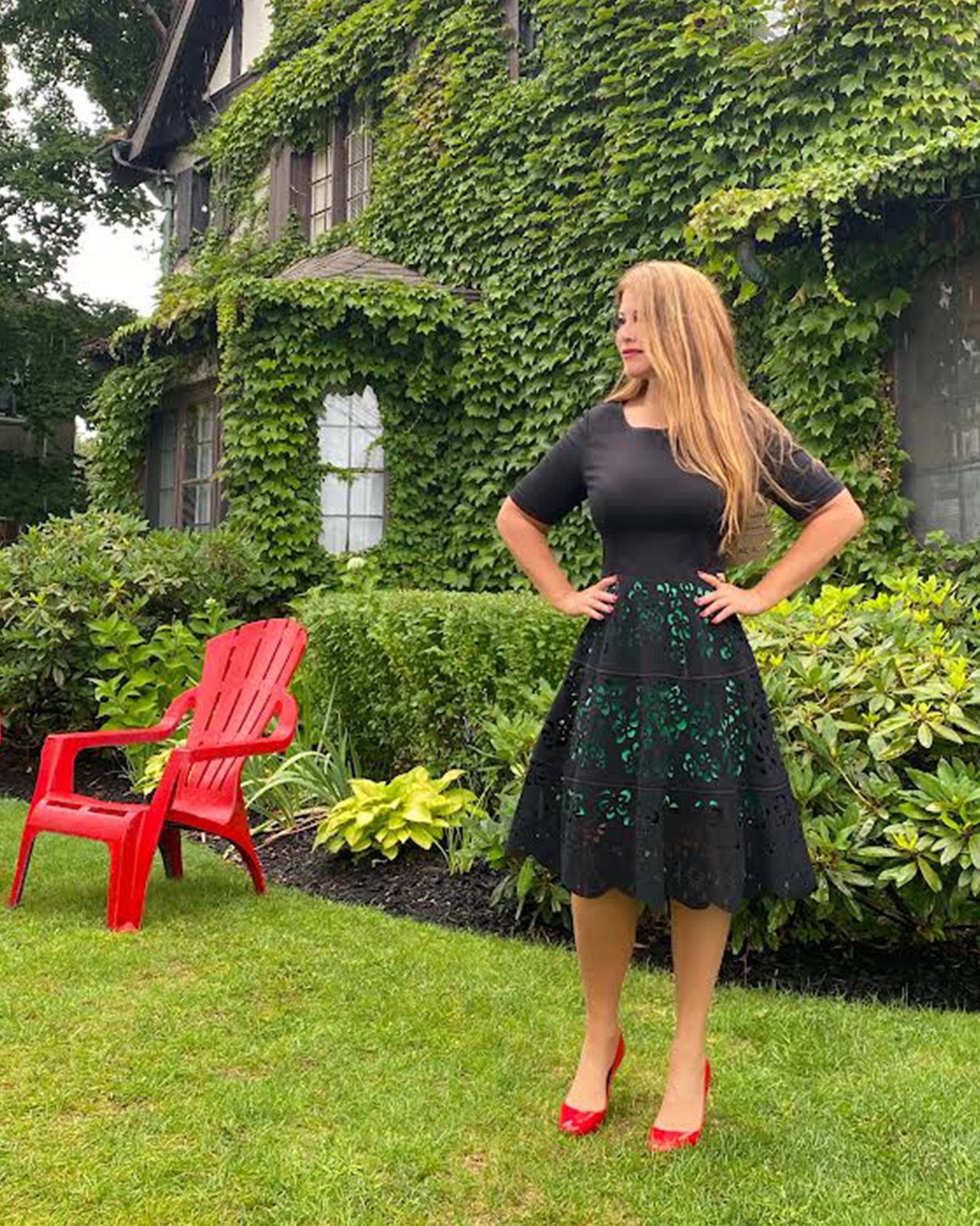 In the case of this polished Fit & Flare dress, it is what is underneath that counts - a color-pop lining revealed through fun laser-cut blooms.
